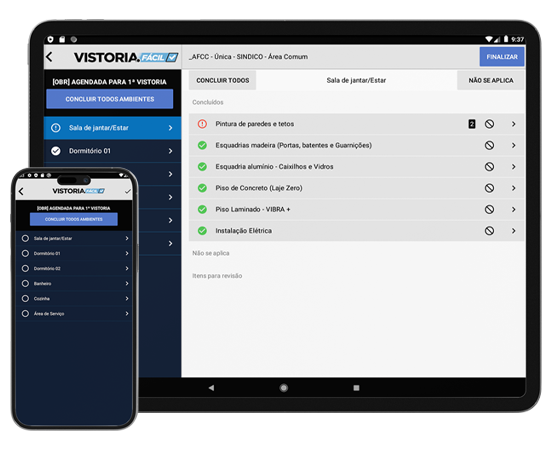 Transforme o processo de vistoria em uma operação organizada, digital e rastreável. Grandes construtoras utilizam o Vistoria Fácil para padronizar processos, controlar prazos e reduzir retrabalho.